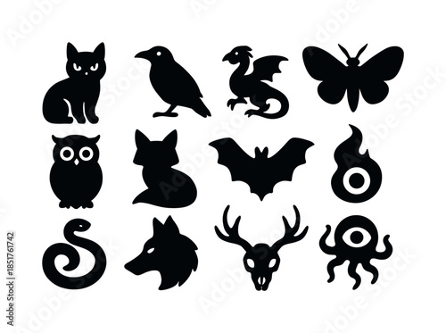 Obraz premium Whimsigoth Creature Icons. Whimsigoth creatures. Solid icon set