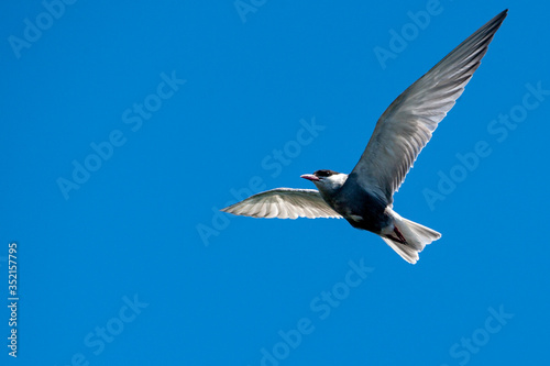 © Ali Tellioglu, Obraz premium Whiskered Tern (Chlidonias hybrida) bird in the natural habitat.