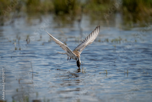 © Nick Dale, Obraz premium Whiskered tern dives for fish in river