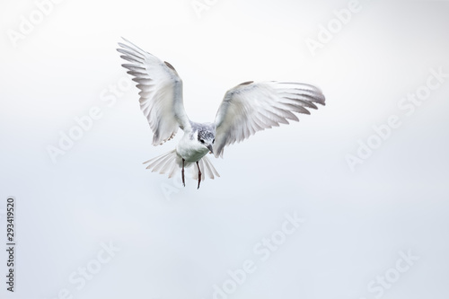 © Alta Oosthuizen, Obraz premium Whiskered tern in flight on cloudy day with spread wings artistic conversion