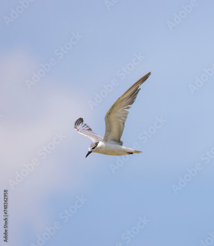 Obraz premium Whiskered Tern in flight seen in natural native habitat, Bentota Beach, Sri Lanka