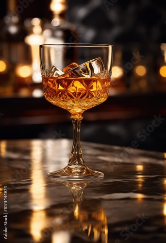 © Yaroslava, Obraz premium whiskey glass displayed polished reflective surface illuminated soft ambient lighting visual appeal, beverage, drink, reflection, ambiance, shine, style