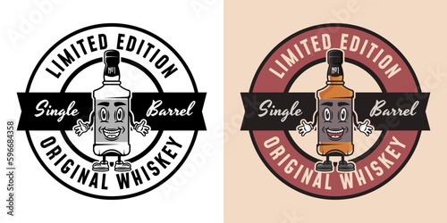 Obraz premium Whiskey smiling bottle vector emblem, badge, label or logo. Two styles...