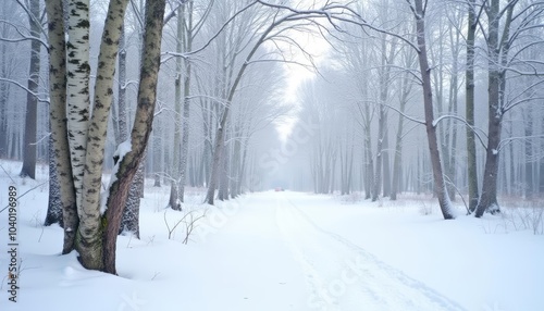 © SwathiFX, Fototapeta premium Whispering paths in a winter wonderland