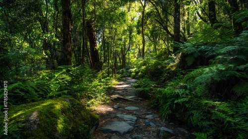 Fototapeta premium Whispering Trails: A Journey Through a Lush Forest