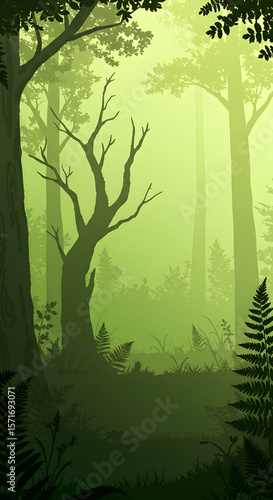 Obraz premium "Whispers Between Trees: A Journey Through Green"