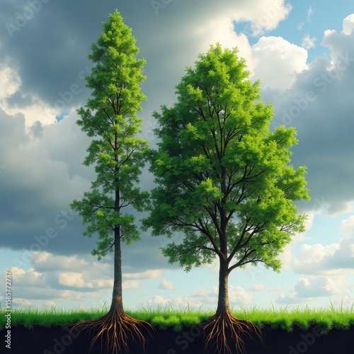 Obraz premium Whispers of the Forest: Twin Trees Beneath the Sky