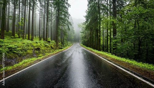 Obraz premium Whispers of the Rain: Exploring the Wet Forest Road