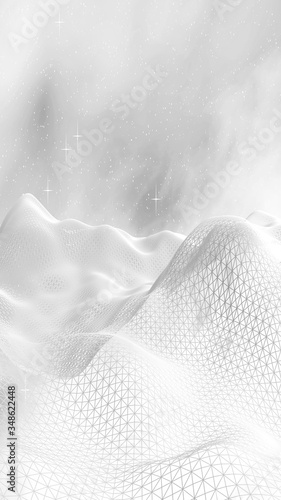 Obraz premium White abstract background. Hi tech network. Cyberspace grid. Outer space. Starry outer space texture. 3D illustration