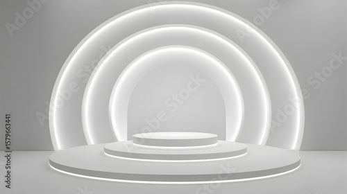 © Fazley, Obraz premium White Abstract 3D Tunnel with Geometric Columns