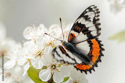 Obraz premium White Admiral Butterfly on flowers on white background, Awe-inspiring,