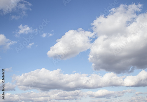 © Maryna Osadcha, Obraz premium White air clouds in the blue sky.