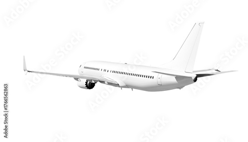 © Aryanto, Obraz premium White airplane Boeing 737 Max 737-8 corner back view angle isolated on a transparent background. Modern passenger jet airplane.