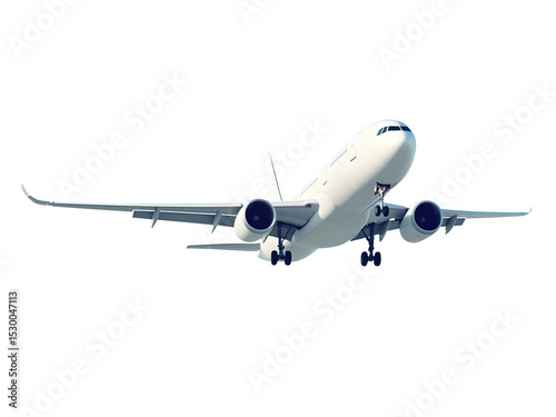 © Aryanto, Fototapeta premium White airplane flying corner view low angle on a white background