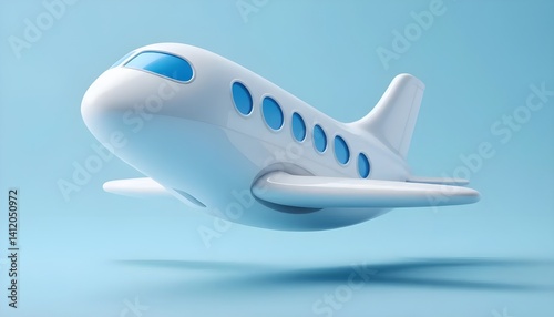 © Sohan, Fototapeta premium White Airplane in Flight: A sleek, white airplane with blue accents soars through the air, representing freedom, travel, and adventure. This whimsical design evokes a sense of joy and anticipation.