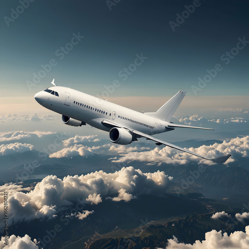 © Arham, Obraz premium White airplane in flight soaring high adventure travel journey