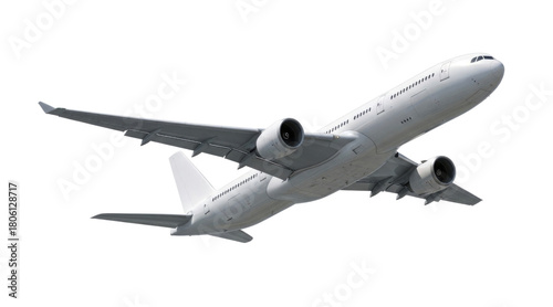 © Saim Art, Obraz premium White airplane in flight transparent background cutout png