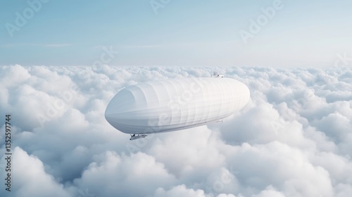 Obraz premium White airship soaring above fluffy clouds