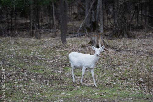 Obraz premium White Albino Deer Walking Through Forest