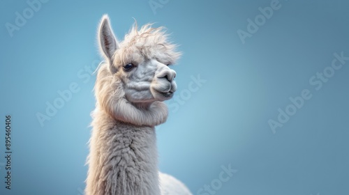 © paukan, Obraz premium White Alpaca Portrait Against a Blue Background
