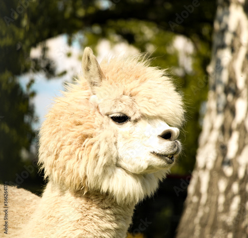 Obraz premium white alpaca portrait, cute animal, fanny alpacas