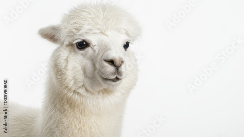 Fototapeta premium White Alpaca Portrait With Soft Wool And Gentle Expression For Stock Photo Use