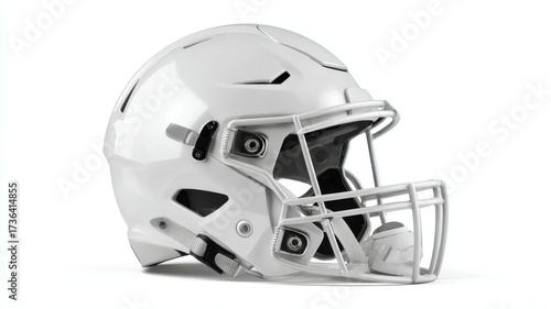 © Nayyab, Fototapeta premium White american football helmet isolated on clean white background, professional protective gear for gridiron sport, athletic equipment for training, competition, and team game safety concept.
