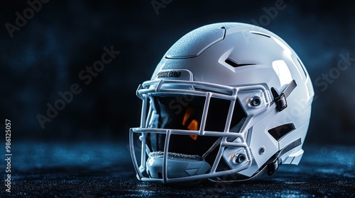Fototapeta premium White American Football Helmet with Water Drops on a Dark Blue Background.