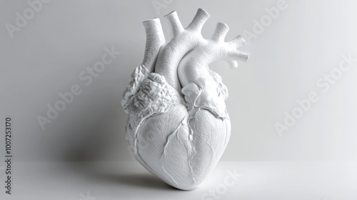 © h4kunA, Obraz premium White anatomical heart model isolated on a white background.