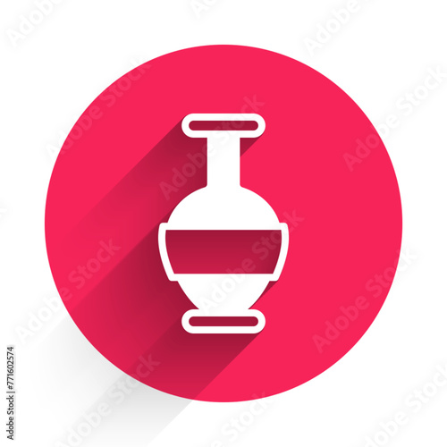 Obraz premium White Ancient amphorae icon isolated with long shadow background. Red circle button. Vector