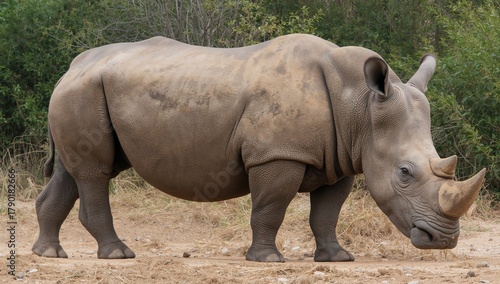 Naklejka premium White and black rhinoceros exhibit similar gray hues, showcasing their large...