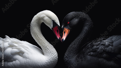 © CreativeArtMD, Fototapeta premium White and black swan making a heart shape