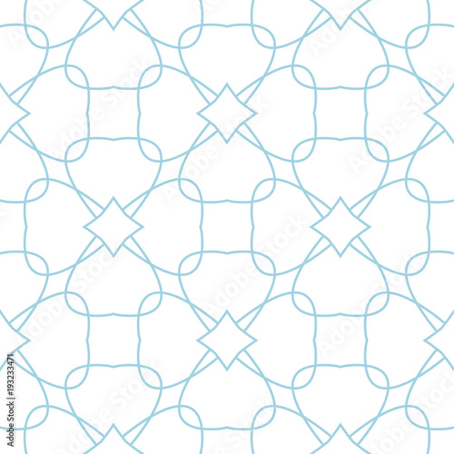 Fototapeta premium White and blue geometric ornament. Seamless pattern