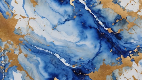 © Grigoriy, Obraz premium White and blue marble textured background. Abstract design texture. Ai generative