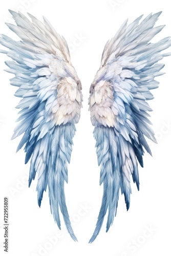© Fotograf, Obraz premium White and blue wings depicted on a clean white background. Suitable for various creative projects and designs
