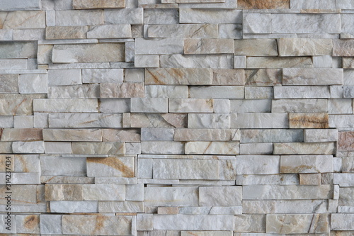 © Kanjana, Fototapeta premium White and brown brick wall, rock brick background.
