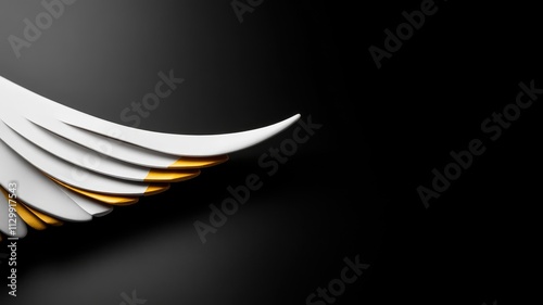 © Artyom, Obraz premium White and gold artistic feathered wing on dark background