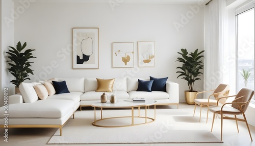 © Eyeam, Fototapeta premium white and gold theme modern interior