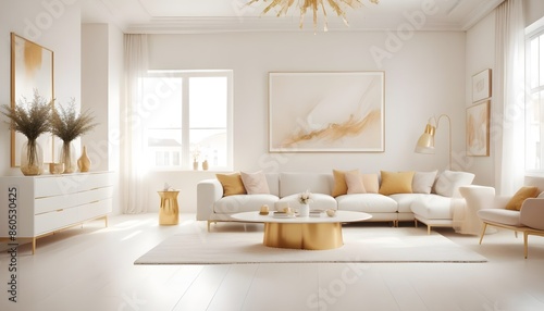 © Eyeam, Obraz premium white and gold theme modern interior design