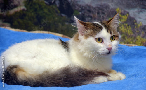 Fototapeta premium white and gray fluffy cat Norwegian Forest