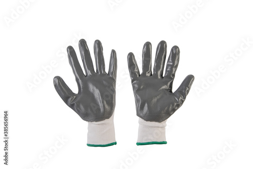© apinya, Obraz premium White and gray protective gloves on a white background.