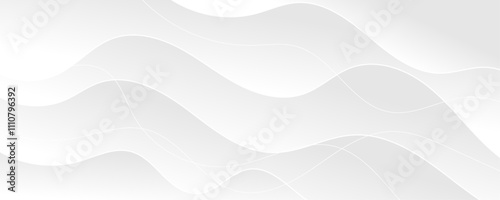 © Rony, Obraz premium White and light gray abstract wave gradient luxury texture paper wave background. Smooth and clean modern abstract wave curve line banner background design. Vector illustration.