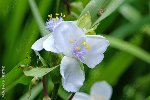 Fototapeta premium White and lilac Tradescantia Andersoniana, spider lily ‘Osprey’ in flower.