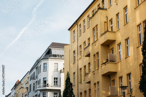 Obraz premium white and orange houses in a street