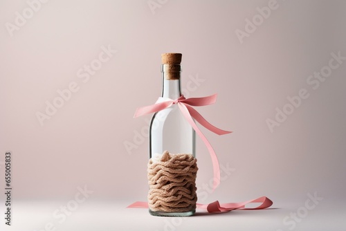 Naklejka premium white and pink bottle with tied cork without label. Generative AI