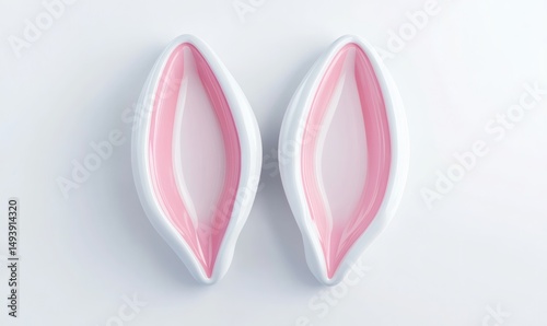 © Five Million Stock, Fototapeta premium White and pink bunny ears close-up, smooth glossy texture, isolated on a white background. Concept of Easter or playful animal design. 3D Rendering,