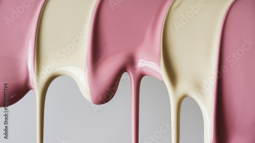 © Nemanja, Naklejka premium White and pink frosting drips down a cake