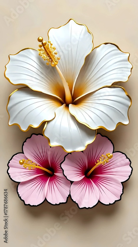 © CIZORTWIST , Fototapeta premium White and pink Hibiscus flower