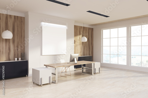 Fototapeta premium White and wooden boss s office, poster side