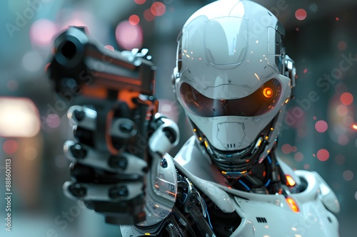 © AI Digital Artist, Fototapeta premium White android pointing a pistol